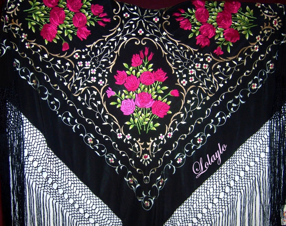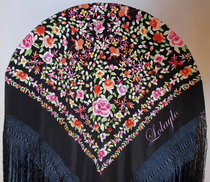 SEDA MULTICOLOR (2)Nº 5.  MANTÓN DE MANILA EN SEDA NEGRA CON PRECIOSOS BORDADOS    MULTICOLOR. 230€. MEDIDAS 1.30 x 1.30 cm. MÁS 60 cm. DE FLECADURA Y  ENREJADO SEDA.   DISPONIBLE EN VARIEDAD DE COLORES.