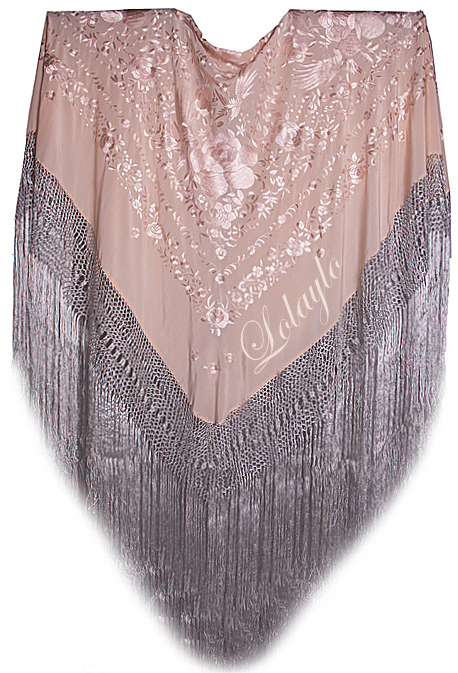 230€. 140cm. SALMÓN Y ROSA LETR.Nº 12.  MANTONES MODELO ANTERIOR EN LOS COLORES Y SALMÓN Y ROSA BORDADOS EN EL MISMO TONO. 1.30 x 1.30cm. MÁS 60  cm. DE FLECADURA Y ENREJADO SEDA 230€.