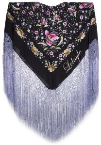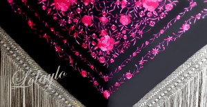 P- 12.1 DETALLE DE LA FALDA modelo LAURA, COLOR CELESTE CON FLORECITAS FUCSIA Y DE LA BLUSA modelo CARLA CON ADORNO DE RIZO EN CUELLO Y PECHERA Y VOLANTITOS EN LOS HOMBROS. FAJÍN RASO DOBLE EN COLOR FUCSIA DE REGALO. Talla única. Medidas: 1.80 x 8 cm. Disponible en gran variedad de colores: ROJO, FUCSIA, CELESTE, ROSA, PISTACHO, MARRÓN, VIOLETA, AMARILLO, NARANJA, VERDE ANDALUCÍA, NEGRO, MORADO Y AZUL PAVO REAL. Precio 10€.